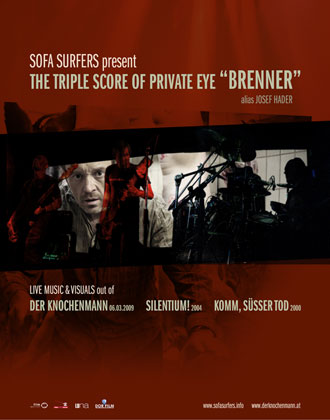 2009 wird ein aktives Jahr in der Sofa Surfers Geschichte: Bevor die Band mit einem brandneuem Album an die Öffentlichkeit treten wird (Herbst 2009), zeigen die Sofa Surfers mit ihrem Live Filmmusikprojekt ihre stilistische und konzeptionelle Bandbreite. Gemeinsam mit dem Visualisten Timo Novotny (Life in Loops 2007) verwirklichen sie eine audiovisuelle Symbiose aus den 3 Wolf Haas Verfilmungen von Wolfgang Murnberger mit Josef Hader als Privatdetektiv Brenner.